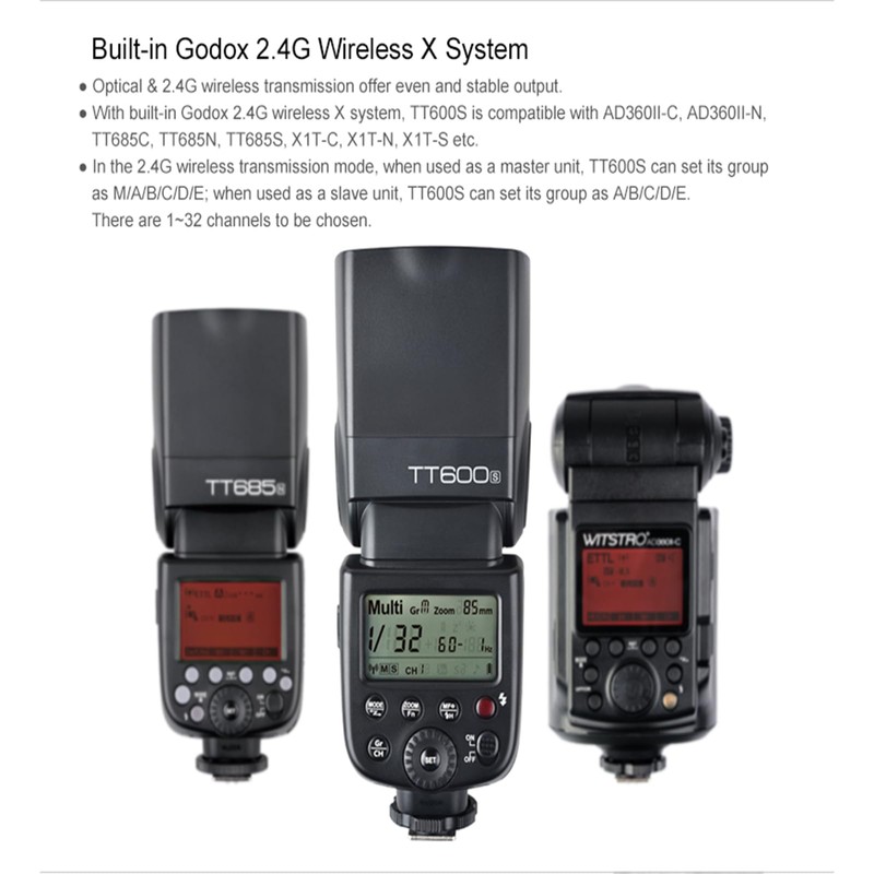 - Advanced 2.4G Wireless System: The Godox TT600S incorporates a sophisticated 2.4G wireless X system, ensuring smooth and reliable wireless communication over long distances. Seamlessly integrates with devices like AD360I-C, AD360I-N, and TT685, making it perfect for any demanding shoot.