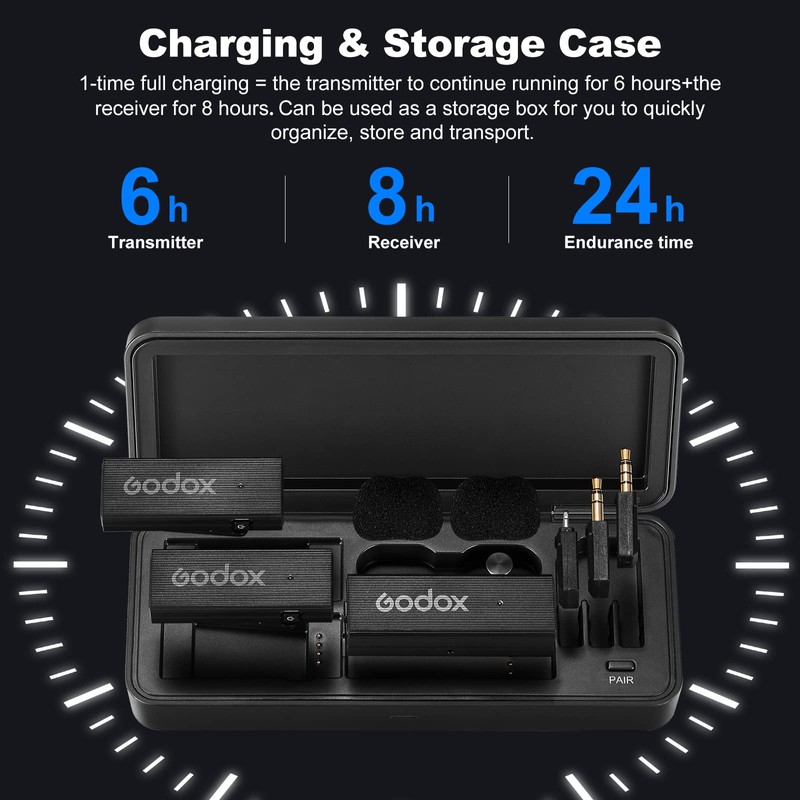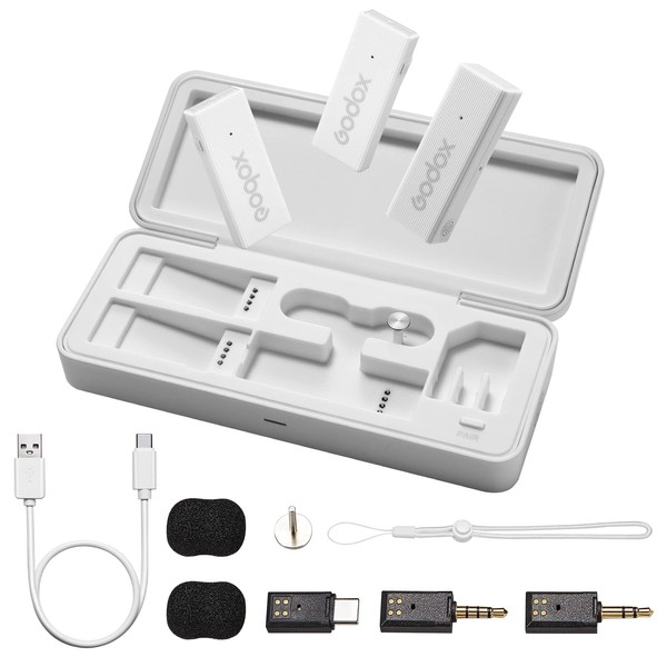 GODOX Movelink Mini UC Kit Wireless Microphone System, 2.4GHz Lavalier Mic 100m(328ft.) Range with Charging Case for Android, Camera, Vlogger, Youtuber, Interviewer(White)