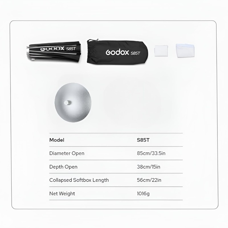 Godox S85T 85cm/33.5in Quick Release Umbrella Softbox Professional Foldable Softbox with Standard Bowen Mount & Diffusers for Photography Studio Photography Portrait Live Stream