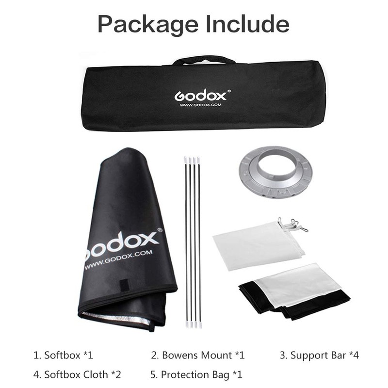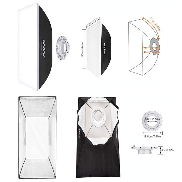 • Photo Studio Softbox : The light diffuser surface is 50x130 cm with Bowens Mount, The size of the softbox makes it desirable for fashion photography, portraits and medium to large product shots.