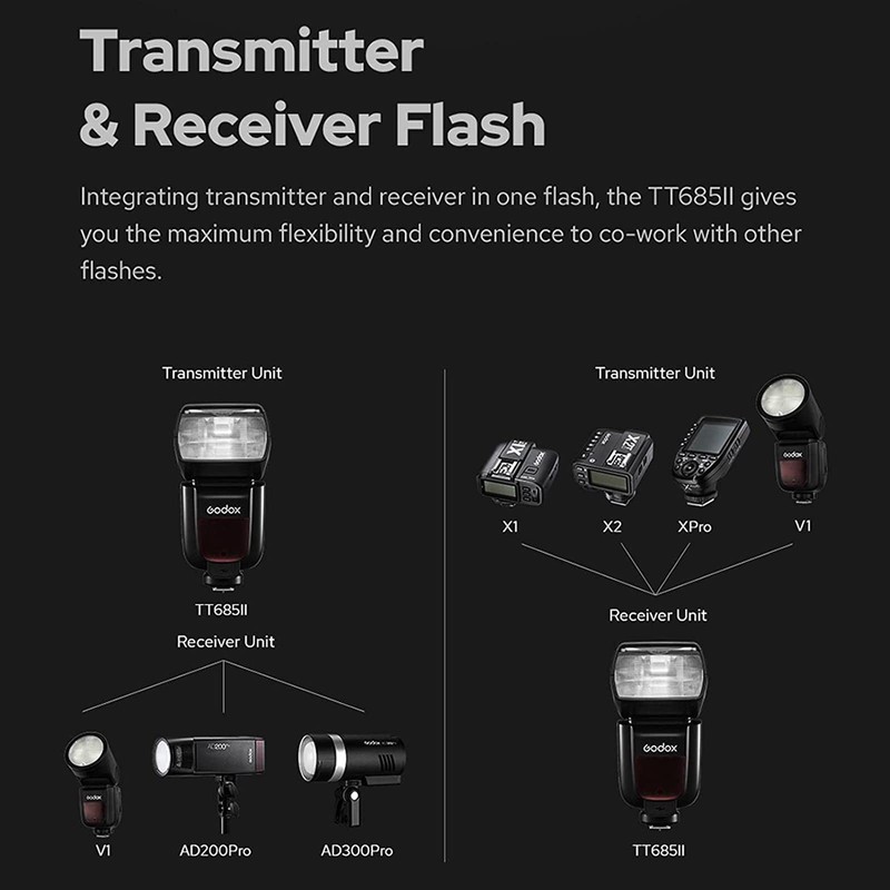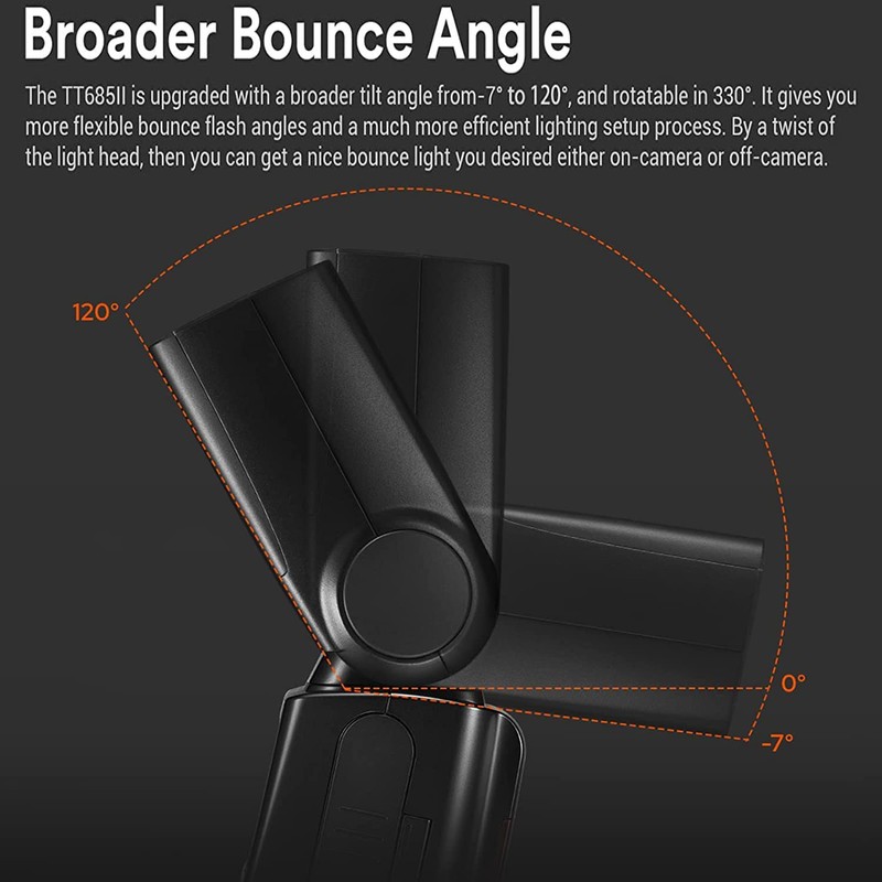 - Variety of Flash Modes: The TT685ll will continue to function in TTL, manual, and multi-flash modes. In TTL mode, all features including HS(up to 1/8000 seconds), FEC, FEB, and second curtain sink, help you capture every wonderful moment quickly, accurate, and creative. In manual mode, it has 22 levels of power output from 1/1 to 1/128, so you can adjust it freely