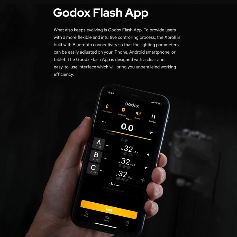 - Funcionamiento intuitivo: cuando coloques tu cámara, disparador y parpadeas lejos, intenta usar la aplicación Godox Flash para controlar remotamente la salida del flash. Para mejorar tu experiencia de usuario, la aplicación Godox Flash te permite ajustar el valor de flash que desees. Y la interfaz de Godox Flash es clara y fácil de usar.