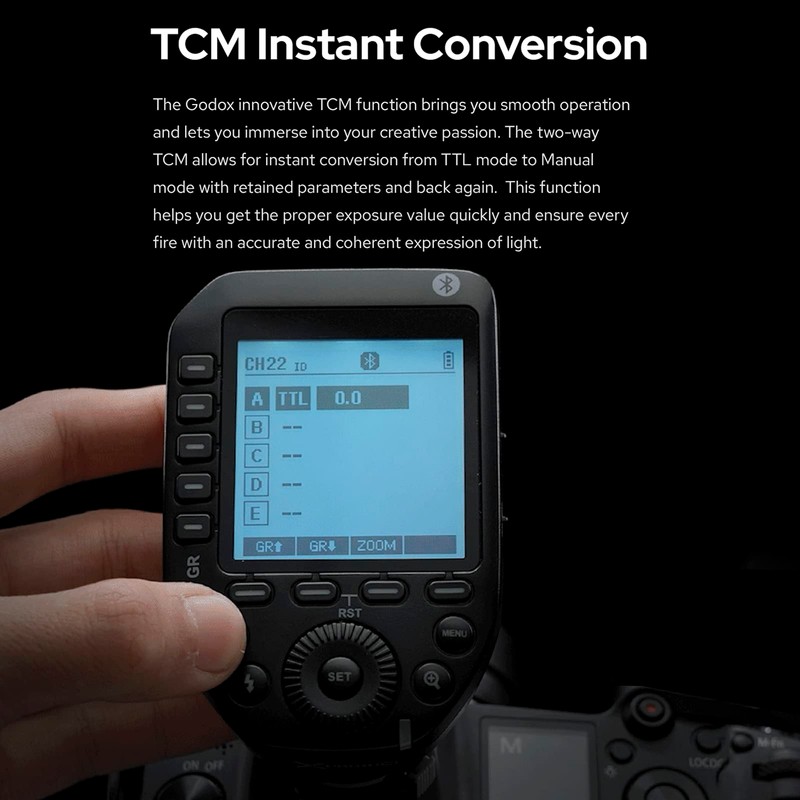 - 【Conversión instantánea TCM: la innovadora función TCM de Godox te ofrece un funcionamiento suave y te permite sumergirte en tu pasión creativa. El TCM bidireccional permite la conversión instantánea del modo TTL al modo manual con parámetros retenidos y otra vez. Esta función te ayuda a obtener el valor de exposición adecuado rápidamente y garantizar cada fuego con una expresión precisa y coherente de luz.