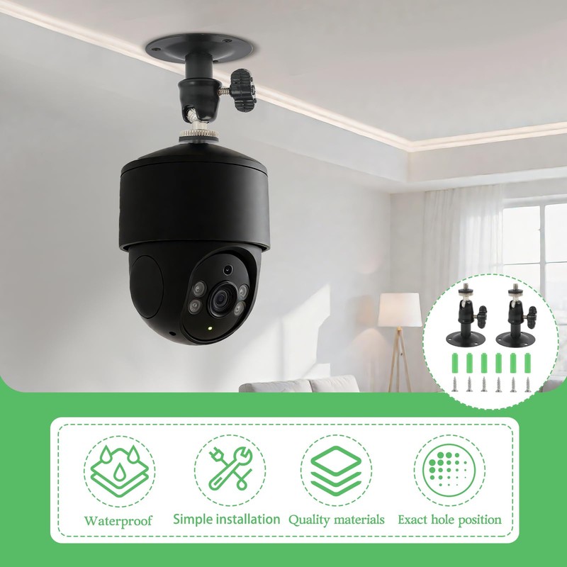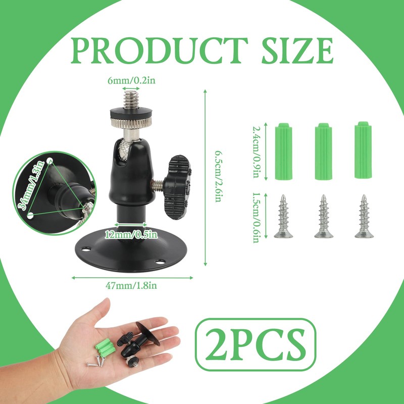 - Enhanced Stability and Security: Equipped with three screw holes for robust wall mounting, this camera mount set ensures your surveillance cameras stay securely in place, whether installed indoors or outdoors. The design provides peace of mind by minimizing camera movement and vibration.