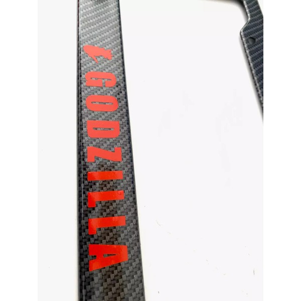 Godzilla Silhouette - Carbon Fiber with RED Automotive License Plate Frame