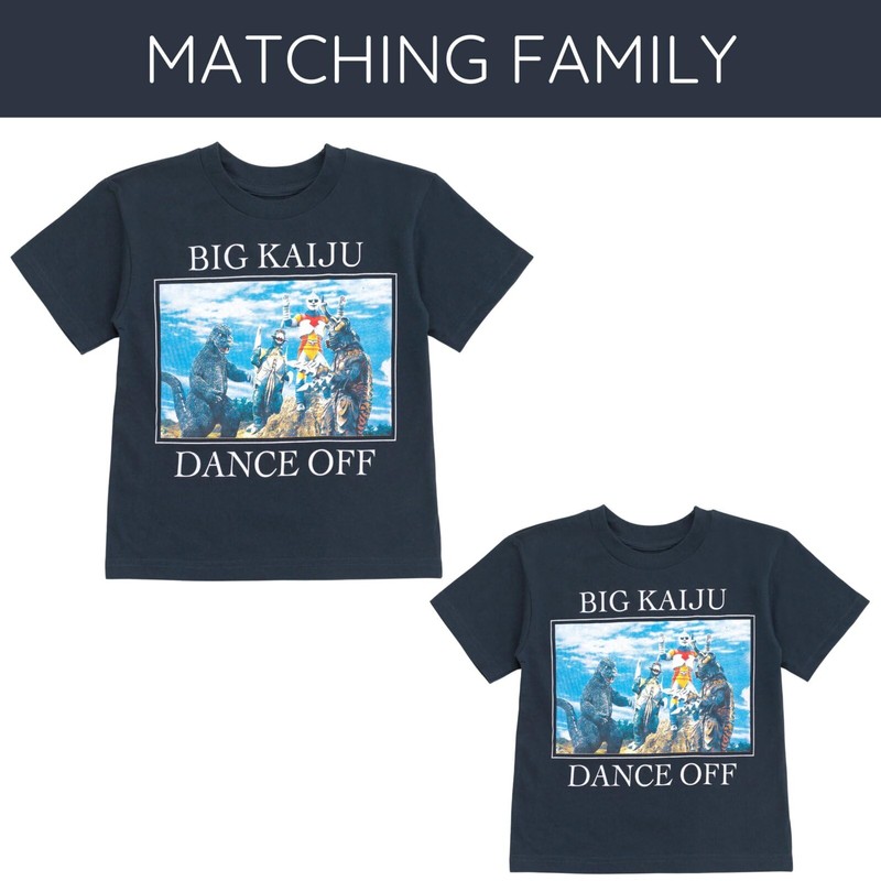 - Rib knit crew neck collar; Pull on closure; Kids and adult sizes for fun matching family outfits; Awesome digital print artwork from Godzilla vs Megalon and the words "Big Kaiju Dance Off"