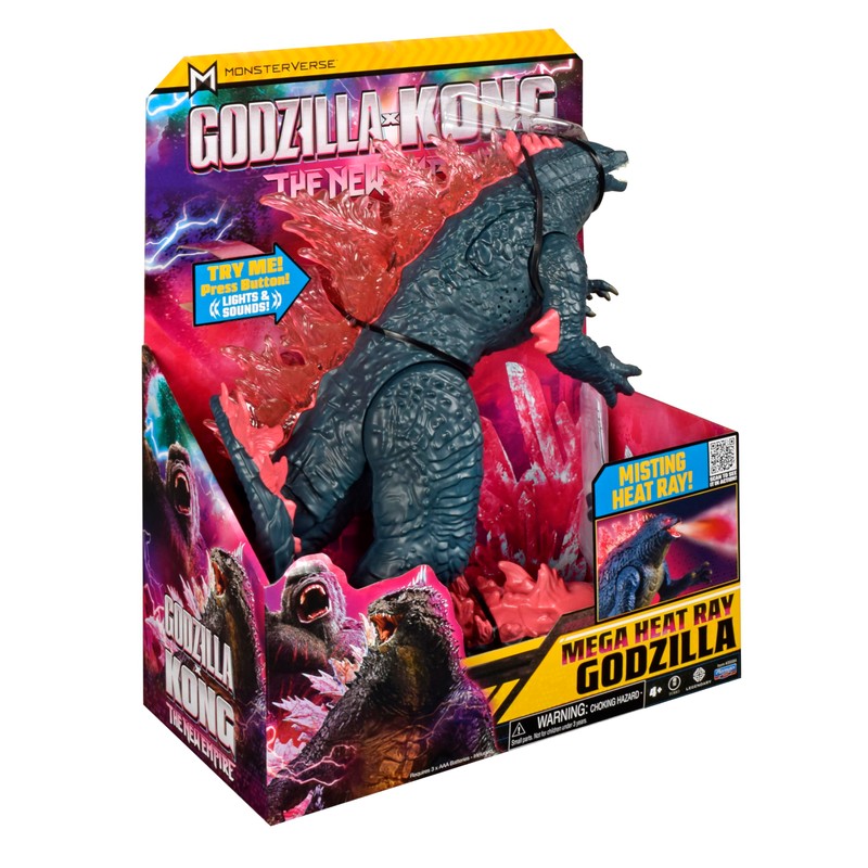 - MOIVE PACKAGING: Mega Deluxe Heat Ray Misting Breath Godzilla comes in bright, bold Godzilla x Kong packaging inspired by the fearsome Hollow Earth landscape in the new movie.