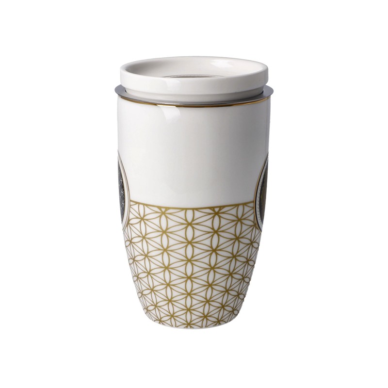Goebel Tea Cup with Strainer Flower of Life 23-101-76-1 Fine Bone China, Colour: Multi-Coloured, Dimensions: 11.5 x 8 x 14 cm