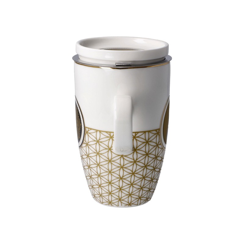 Goebel Tea Cup with Strainer Flower of Life 23-101-76-1 Fine Bone China, Colour: Multi-Coloured, Dimensions: 11.5 x 8 x 14 cm