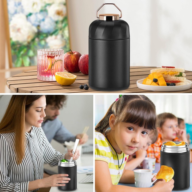 - 【Thermal Food Container with Folding Spoon】The excellent leak-proof function keeps lunch clean,Compact and insulated stainless steel serving bowl; full size folding stainless steel Spoon included.