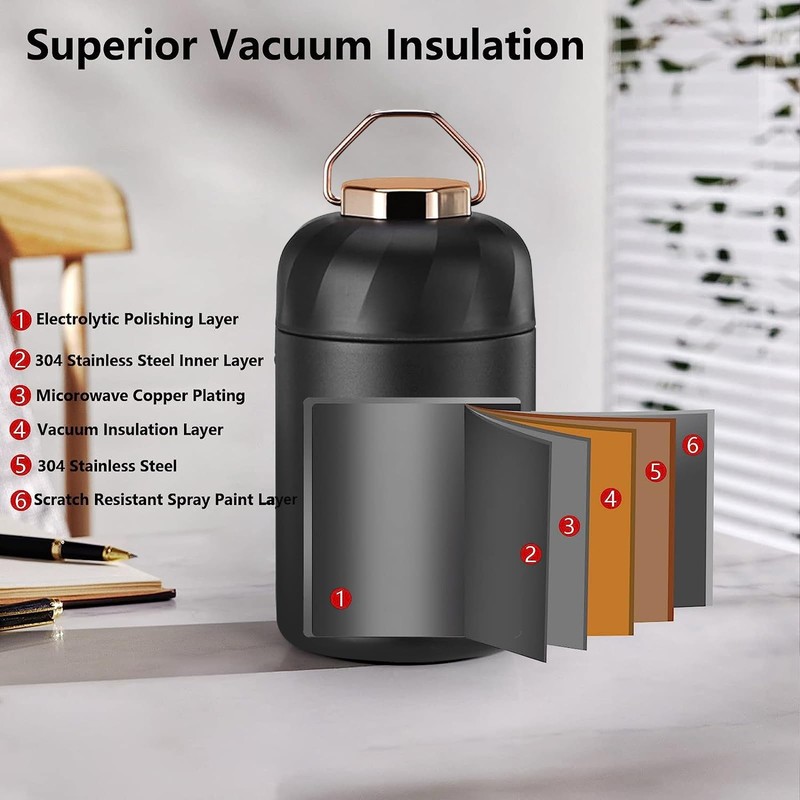 - 【Double Insulated Stainless Steel Design】Made from 304 stainless steel in the highest-level of quality for keeping hot and cold for 6-8 hours. Double lips including one external lip and one internal lip make the food and soup in the food flask insulate from outside temperature completely