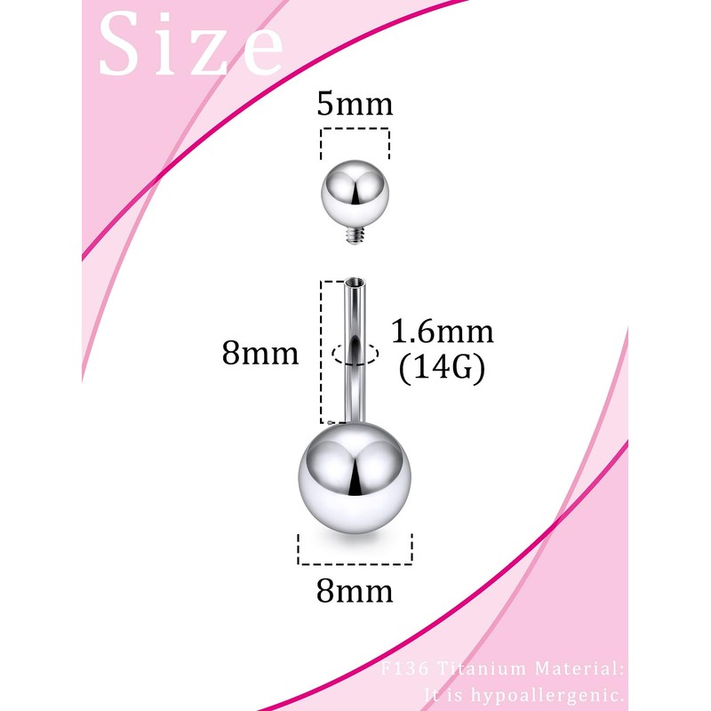- 1pcs ASTM F136 Titanium Basic Balls Belly Button Piercing Jewelry.