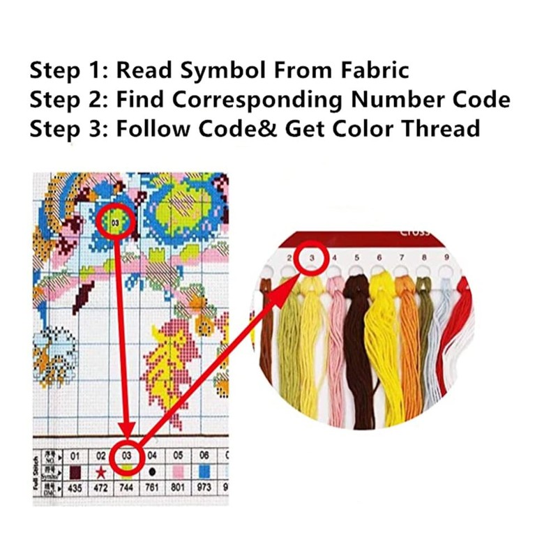 - Pre-Work: 14 CT small lattice embroidery should be completed with 3 strands of thread. Each thread has 6 strands, you need to divide the 6 strands into three 2-strands. Don't split them in half, so as to avoid insufficient thread