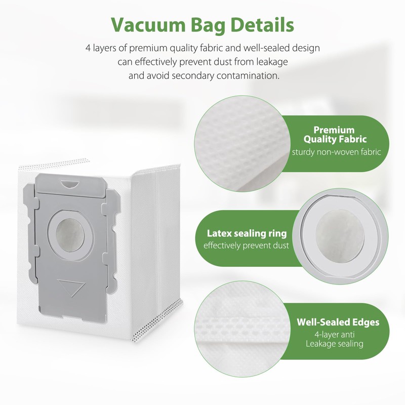 - 20 PCS vacuum bags compatible with all cleaning base and iRobot roomba i & s & j series i3 i3 Plus i3 + ( 3550 ), i4 i4 Plus i4 + ( 4552 ), i6 i6 Plus i6 + ( 6550 ), i7 i7 Plus i7 + ( 7550 ), j7 j7 Plus j7 + ( 7550 ), i8 i8 Plus i8 + ( 8550 ) s9 s9 Plus s9 + ( 9550 ) vacuum bags. The perfect replacement for roomba bags.