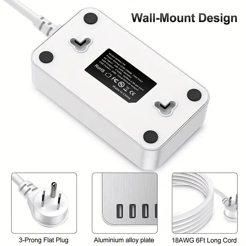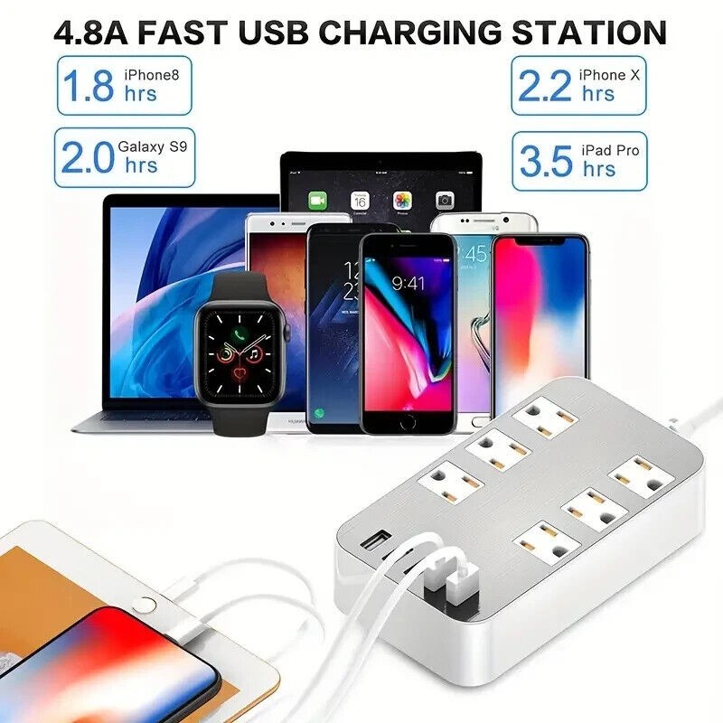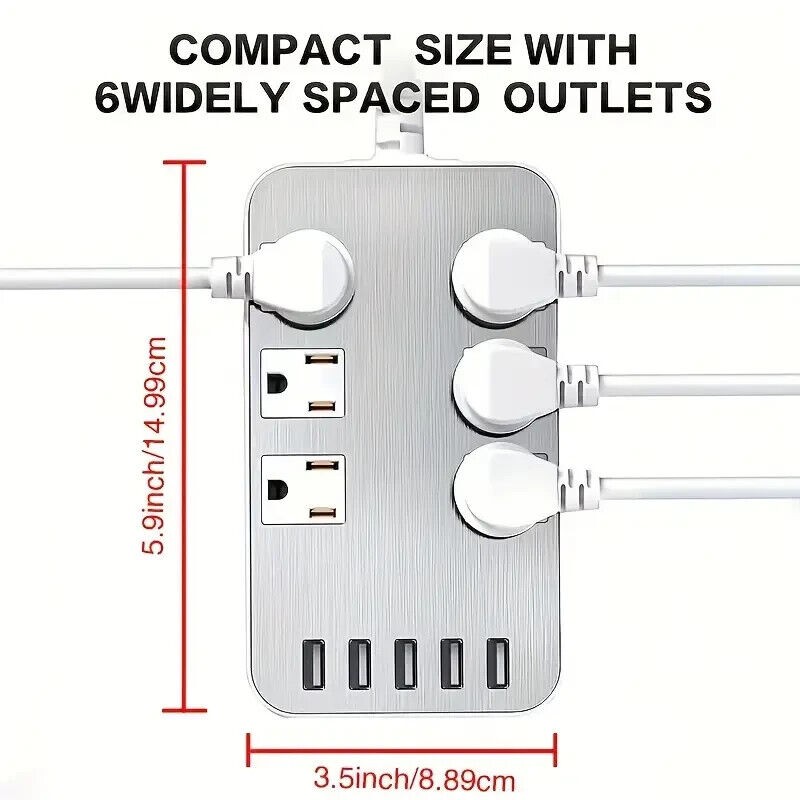 Designed with 6-Outlet Power Strip Surge Protector with 5 smart USB charging ports allow you to charge 11 home appliances and mobile devices at the same time