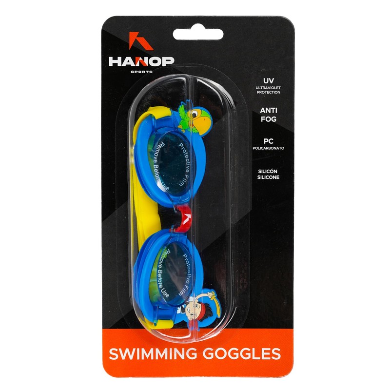 Goggles de Silicón Hanop Infatiles para Natación, Visión Clara no se Empañan, con Filtros UV para Entrenamientos en Alberca o Aguas Abiertas. (Azul)