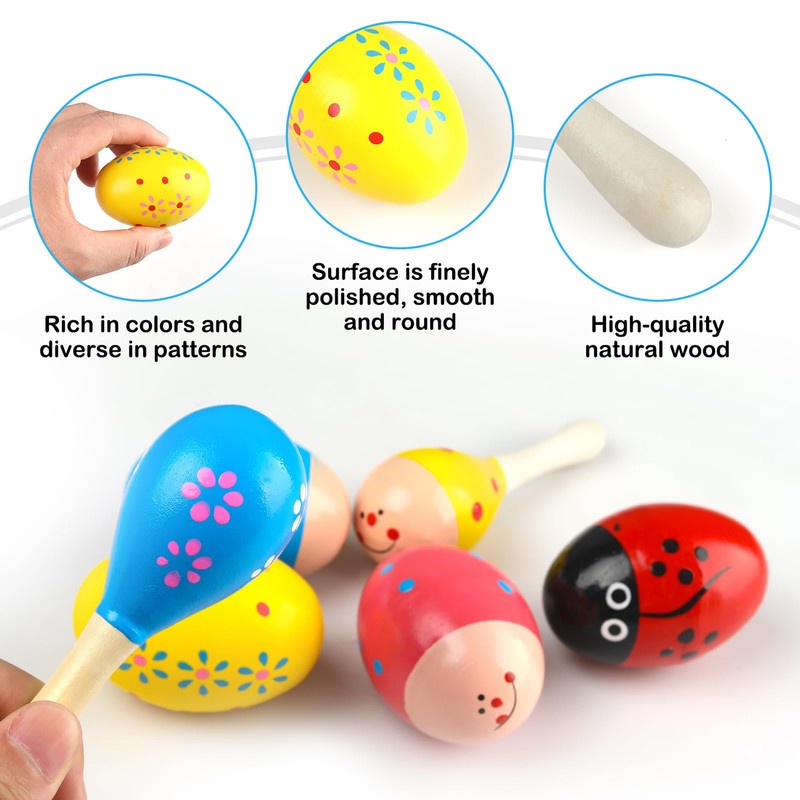 - ♬ Set: You will receive 4 wooden Easter eggs and 2 wooden colorful maracas. Each one has its unique texture and color.