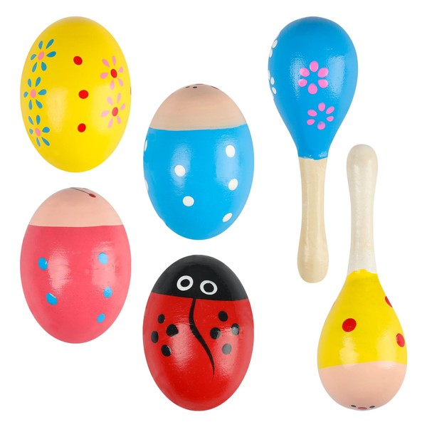 GOGHOST Easter Wooden Egg Shaker Set(6 Pcs), 4 Easter Eggs and 2 Maracas, Percussion Instruments for Easter Party or Classroom Music
