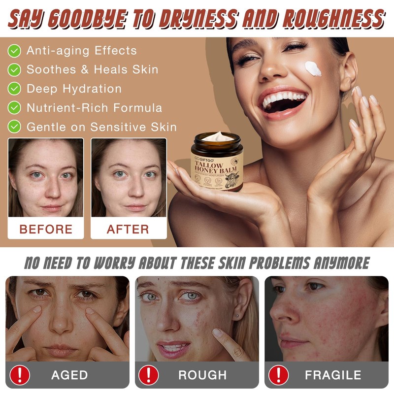 GOGIFTGO Beef Tallow for Skin,Tallow and Honey Balm,Beef Tallow for Face,Tallow Face Moisturizer,Natural Moisturizer Hydrates,Deeply Nourishes the Skin, Enhances Natural Radiance (1pcs)