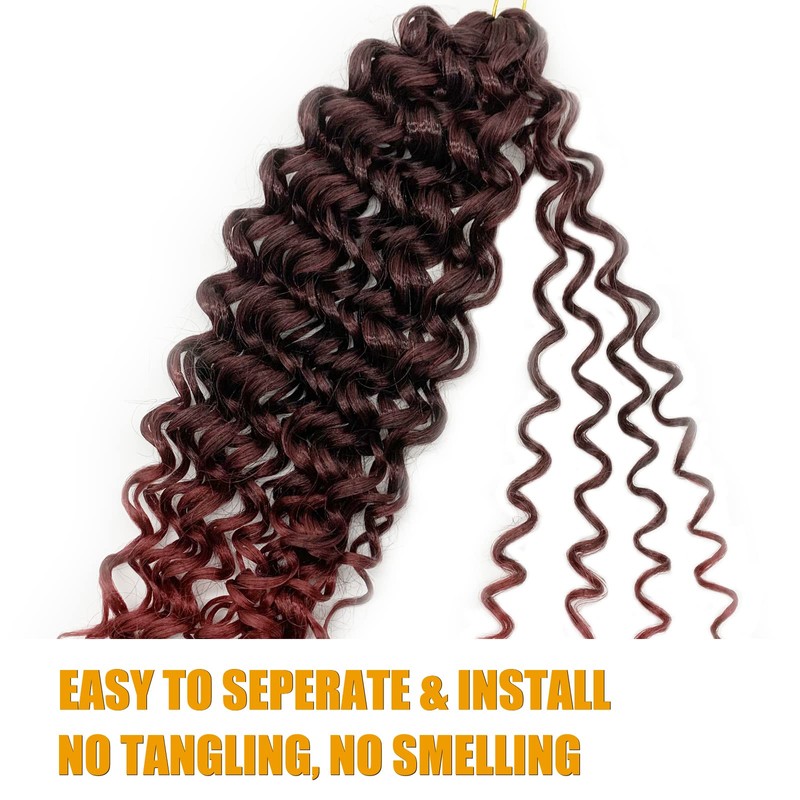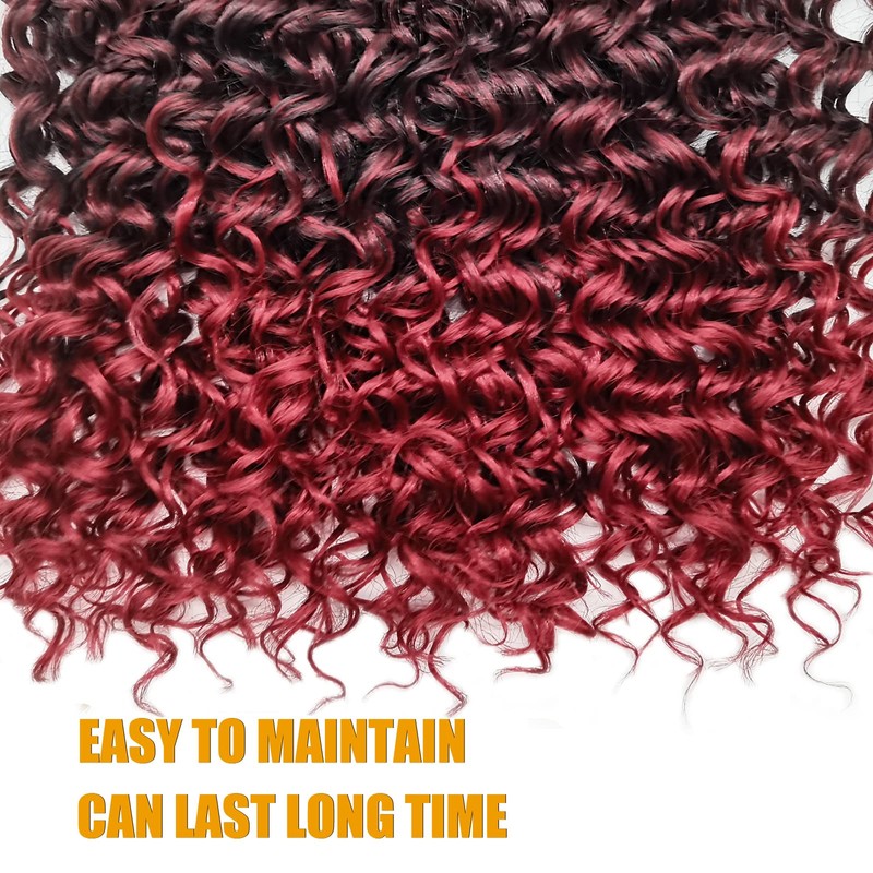 Gogo Curl 14 Inch 8 Packs Curly Crochet Hair for Black Women Ombre Burgundy Color Red BUG Wavy Beach Curls Water Wave Go Go Crotchet Hair Synthetic Curly Braiding Hair Extensions(14inch 8pack, 1b/bug)