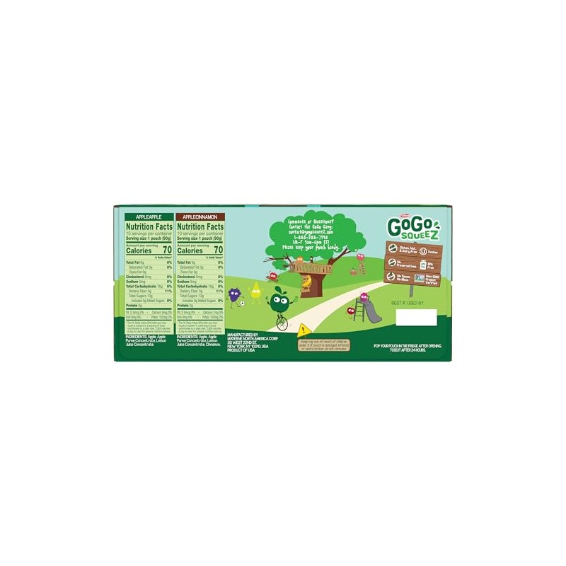 Stock up with this variety pack of two yummy GoGo squeeZ Fruit on the Go varieties: Apple Apple and Apple Cinnamon. GoGo squeeZ Fruit on the Go Apple Apple is our signature applesauce flavor, made with apples and yumminess, for a tasty snack anytime, anywhere. GoGo squeeZ Fruit on the Go Apple Cinnamon is a spicy spin on our signature applesauce flavor and adds a bit of zesty cinnamon goodness. These unsweetened fruit snacks are made from fruit with no high fructose corn syrup (HFCS), no added colors or flavors and no sugar added.* All that lip-smacking fruit in one no-fuss, no-mess and convenient kids snack! GoGo squeeZ unsweetened fruit snacks are Non-GMO Project Verified, gluten free, nut free, dairy free and kosher certified. Our products are free of all 9 major allergens, so you, your kids and your whole family can enjoy GoGo squeeZ snacks with confidence and share them without worry. GoGo squeeZ pouches are BPA free and feature easy-open caps and a built-in straw. No spoon, and no mess! From GoGo squeeZ Fruit on the Go, GoGo squeeZ fruit and veggieZ, GoGo BIG squeeZ, GoGo squeeZ Happy tummieZ, and GoGo squeeZ Morning smoothieZ to GoGo squeeZ yogurtZ, there's a variety of snacks to please every child (and adult!) in your family. *Not a low calorie food. See nutrition information for sugars and calorie content.