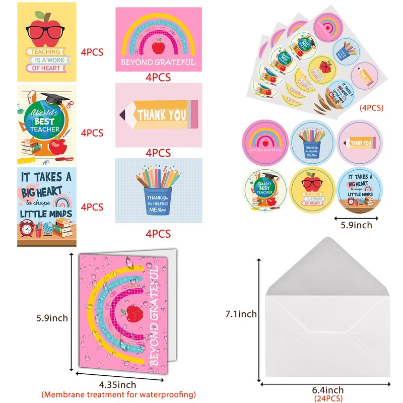 GOGOBAY 24 Teacher Cards with Envelopes