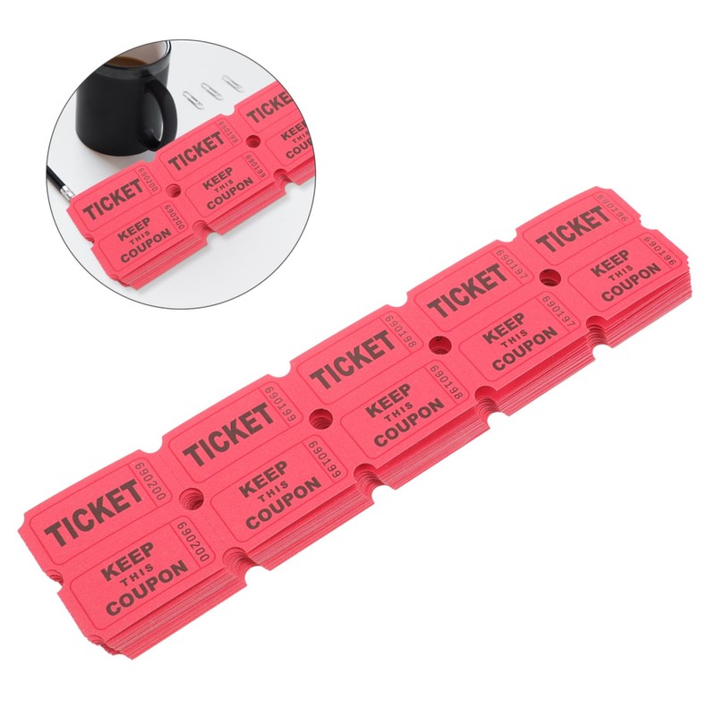 Gogogmee Pack of 100 Tombola Tickets, Event Tickets, Cinema Tickets, Party Game Accessories, Tickets, Large Tickets for Concert Tickets, Tombola Tickets for Events, Carnival Tickets