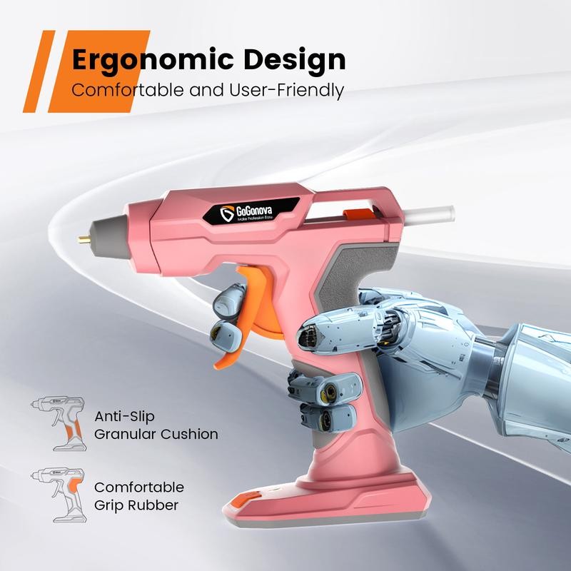 • GoGonova Glue Gun, 20s Fast Preheating Anti-drip Cordless Glue Gun, 2Ah USB-C Rechargeable with 25 Pcs Mini Glue Sticks, Smart Power-Off Tool Rubber Portable Handle