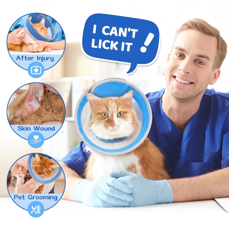 - Effective Cat Cone Collar Soft: The cat recovery collar can effectively prevent your lovely cat from licking or biting wounds, aiding in the healing process. It's also highly suitable for cats with skin issues. Acting as a reliable protective barrier, the cat cones after surgery can help cats recover swiftly. Additionally, this soft cat cone provides excellent protection during pet grooming activities like bathing and nail trimming, safeguarding people from biting