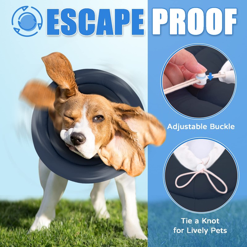 - 【Adjustable Cone for Dogs】: The small dog cone is equipped with a rope buckle. You can easily adjust according to the size of the pet's neck. Don't worry about the escape of pets. After adjusting, you can tie a knot to prevent lively dogs from escaping. Before adjusting the soft cone, just press and hold the buckle to easily adjust the length of the rope. Warm Note: Leave a space for a finger for your loved dogs to breathe smoothly.