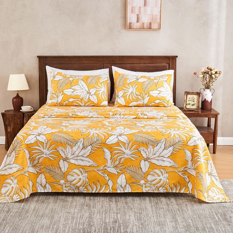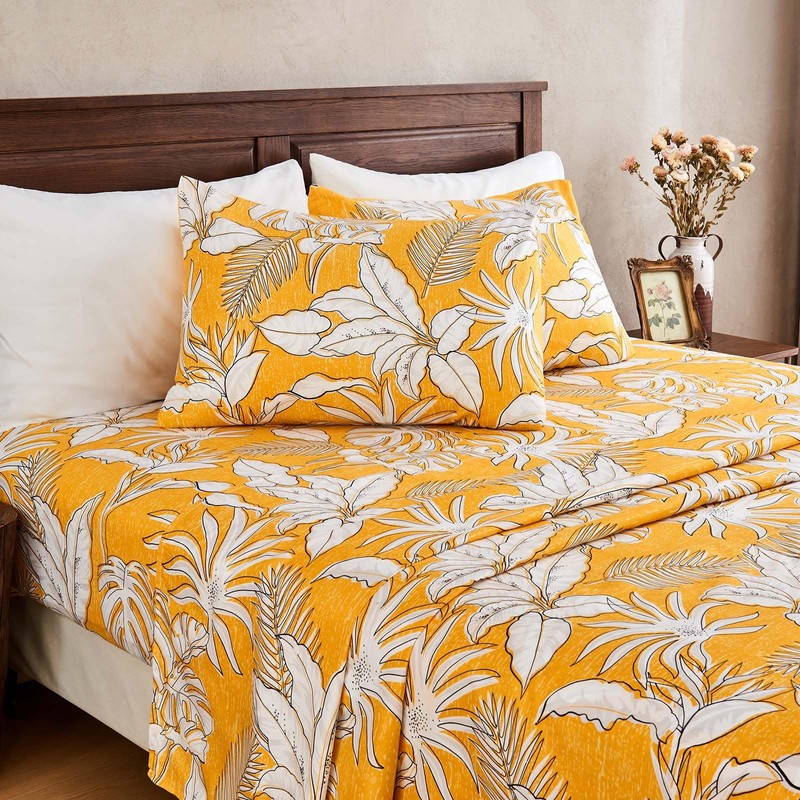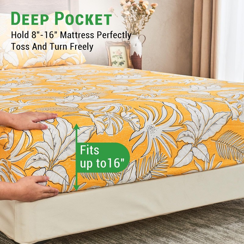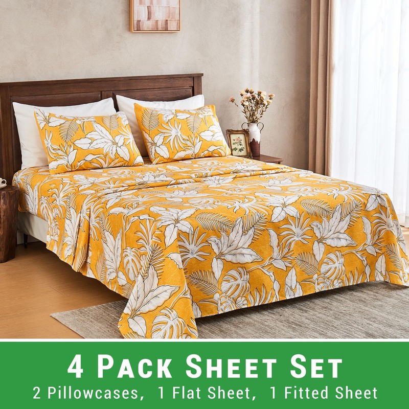 Gogreen 4PC Deep Pocket Full Sheet Set Fit 14", Breathable Microfiber Soft Full Size Sheet Set, Hotel Style Bed Sheet Set, Gift for Women, Men - Yellow Leaves