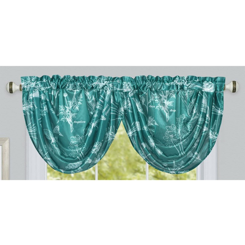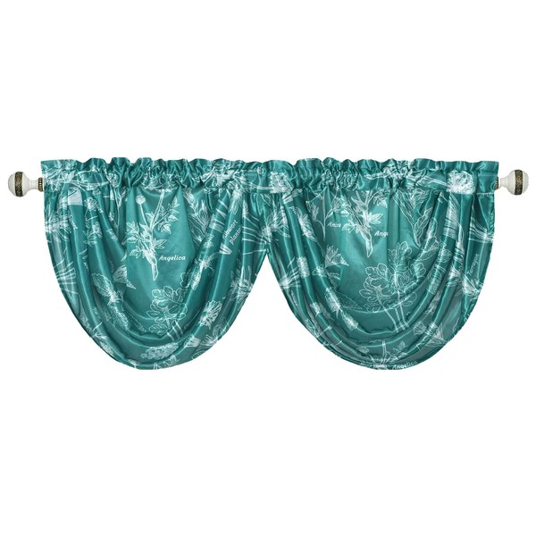 GOHD Vivian Grace Window Valance, 54 x 18, Farmhouse Elegant Taffeta Fabric with Beautiful Prints, Waterfall Valances for Windows, Teal
