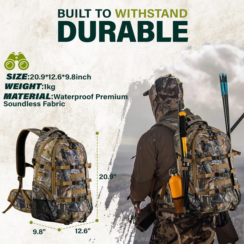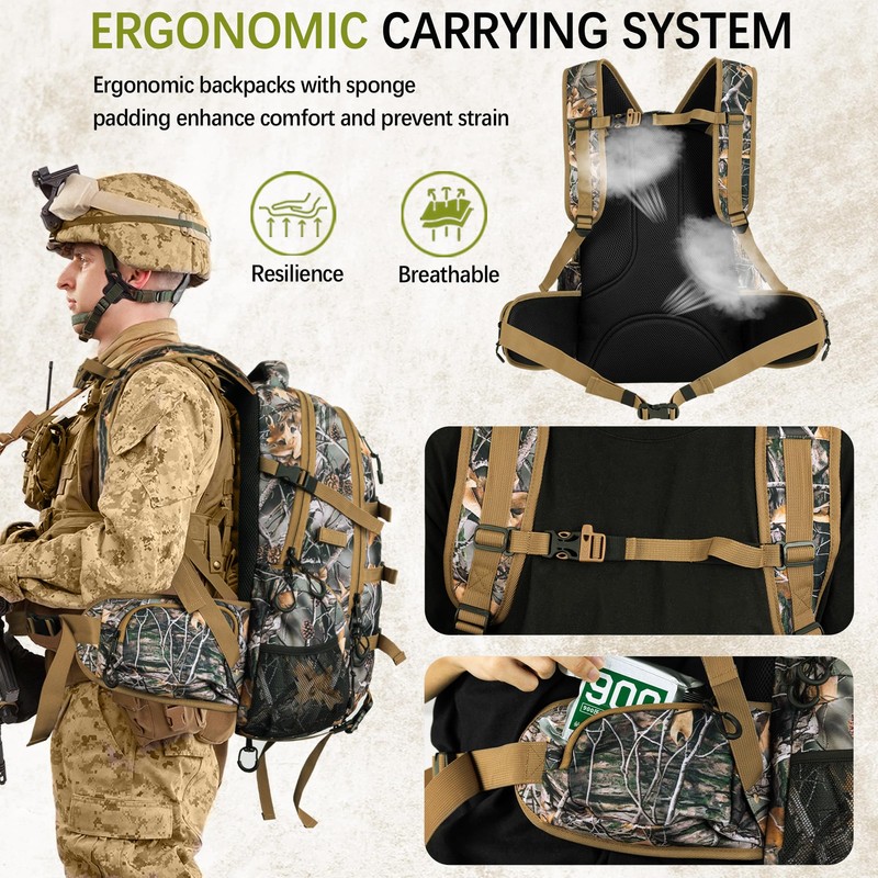 - 【Versatile and Durable】 Our hunting backpack is not only suitable for hunting but also serves as an excellent companion for hiking and camping adventures. It's versatile design and durable construction make it a reliable choice for carrying essential gear and camping equipment in various outdoor scenarios