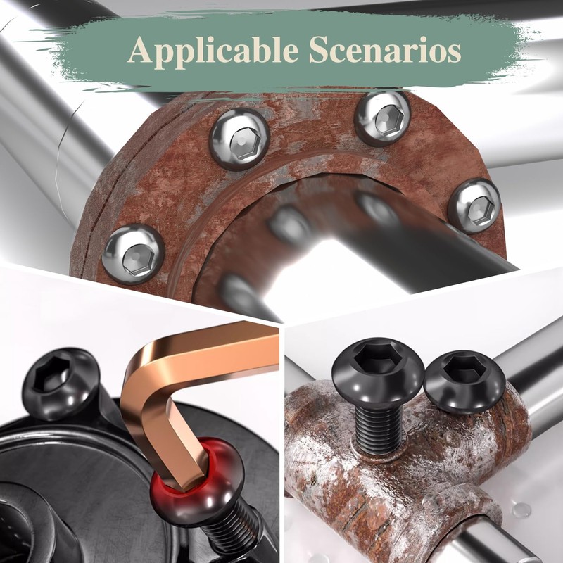- WIDE RANGE OF APPLICATIONS - Button Head Socket Cap Bolts Screws can be widely used in the home and office appliance, ship assembly , the mechanical industry and small repairs around shops, garages or home furniture fasteners.