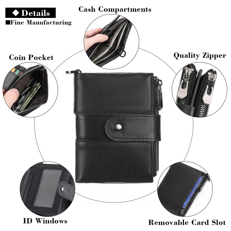 - 【Intelligent Use of Space】The men's wallet consists of 14 credit card slots, 1 ID or photo compartment, 2 coin pockets with zip, 2 cash slots, large capacity to neatly organize your credit cards, ID cards and cash to satisfy what men need to carry in business, life and travel.