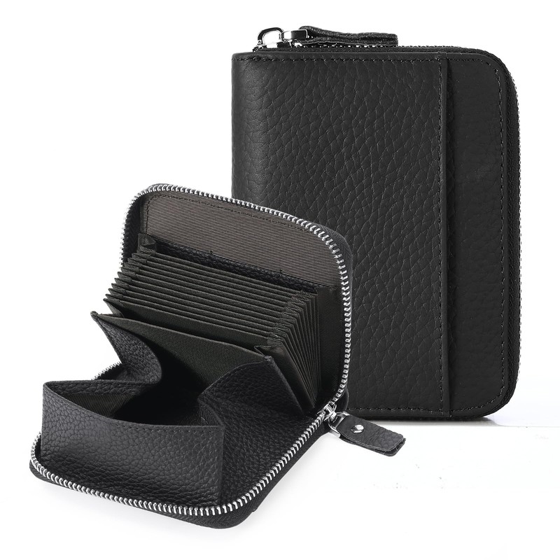 GOIACII Women's Leather Credit Card Holder, RFID Protection, Small Wallet with Many Compartments and Coin Compartment, Small Large Capacity Card Holder for Women, A-Black, Classic