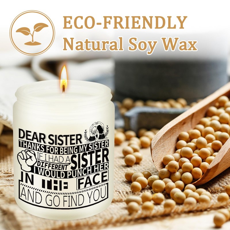 - Gifts for Sisters: Give the gift of tranquility and sisterly love with this unique candle. Its soft, floral scent evokes the gentle comfort of a sister’s presence, creating a peaceful space for shared moments. Like the bond it represents, the experience is one to be treasured. The label adds a touch of humor with the message: “Thanks for being my sister. If I had a different sister, I would punch her in the face and go find you