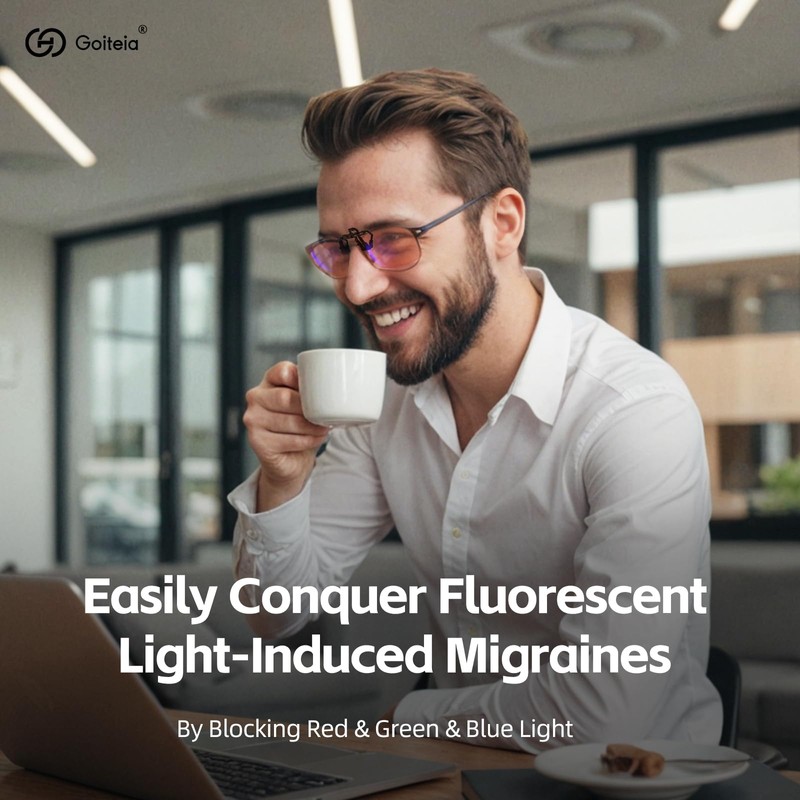 • 💡Prevents Migraines from Lighting:Goiteia migraine clip-ons are ideal for environments with fluorescent lighting, computer screens, and harsh light sources. These lenses prevent eye strain and migraines while maintaining a stylish appearance, ensuring you don't stand out in the office.