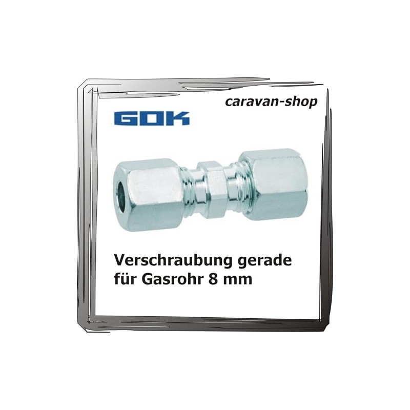 GOK Cutting Ring Fitting Straight for 8 mm Gas Pipe Screw Connection Connector Propane, Gas Pipes in Caravans, Motorhomes, Caravans