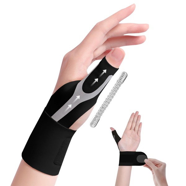 • ✅【 5.5cmの幅広ベルト・弾性アルミ製のスプリング内蔵 】 弾力性のあるアルミ製板状のスプリング(長さ:5cm)を内蔵(外観には見えません)。親指をしっかり支えながら、手の動きを妨げません。5.5cmの幅広ベルトで手首を安定固定、「親指付け根」と「手関節部」の2箇所を同時にケアします。