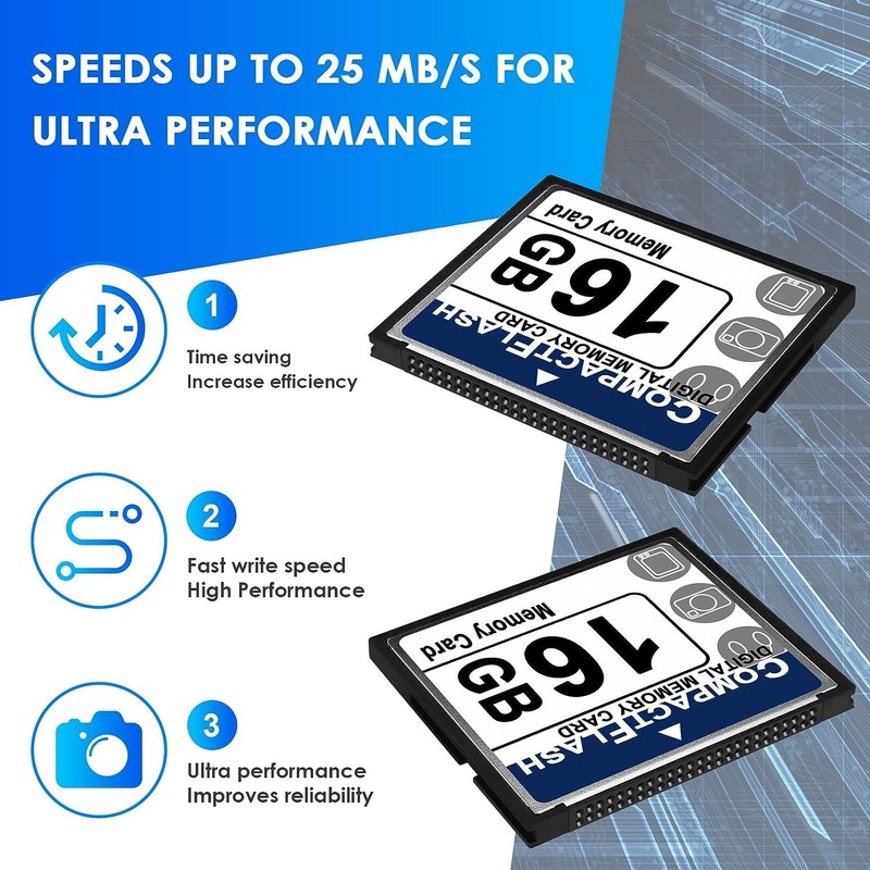 Gokelomg Professional 16GB Compact Flash Memory Card (Whiteandblue)