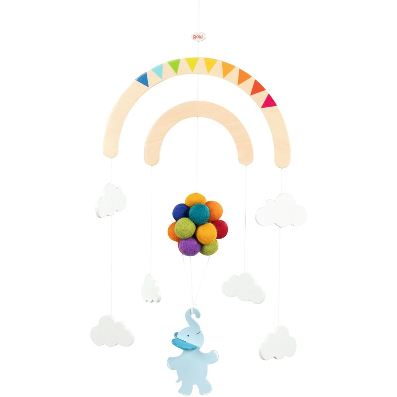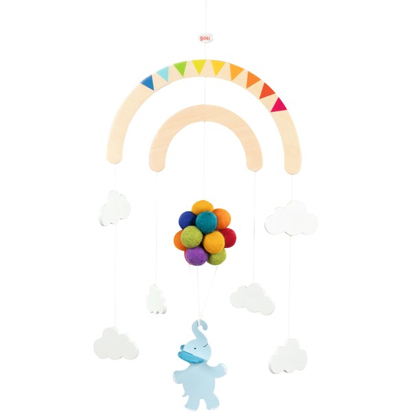 goki 52867 Mobile Elephant on the Journey Made of Wood and Wool Felt, Soothing Wooden Mobile, Theme Clouds & Balloons in the Baby Room, Promotes Imagination and Visual Development, 25 cm x 30 cm, from