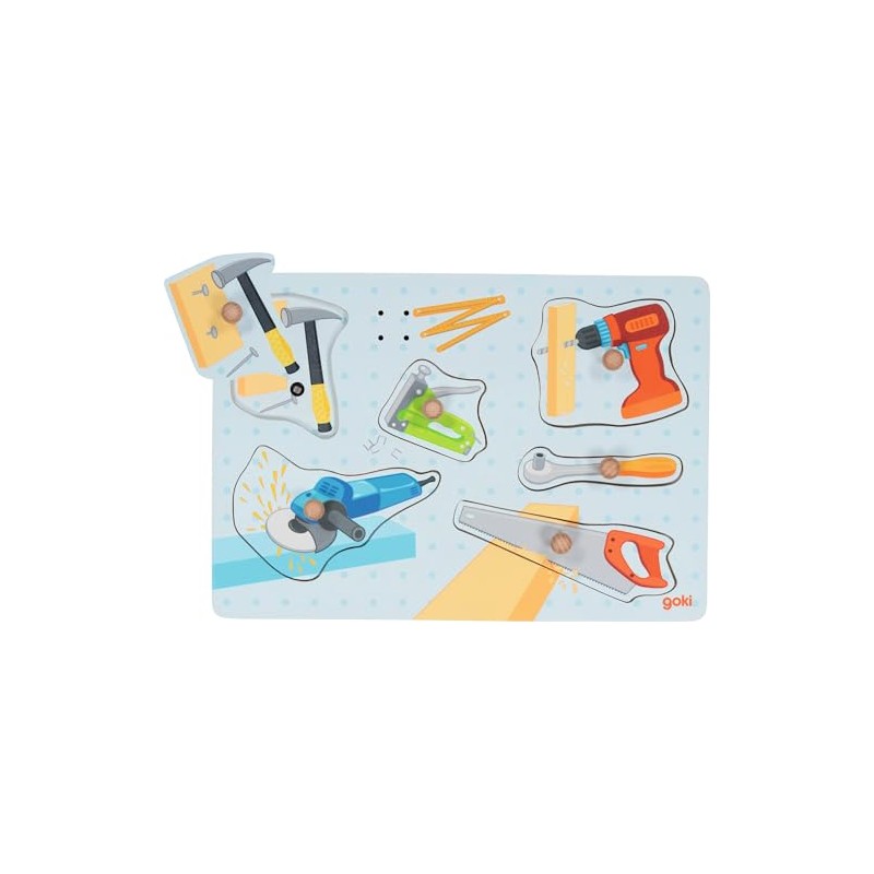 goki 57368 – Puzzle Tools, Sound Puzzle with Tool Sounds - 6 Pieces - Wooden Sound Puzzle