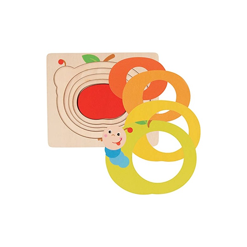 goki 57403 Wooden Puzzle 5 Layers Worm in Apple Design, Multi-Colour, 12.3 x 10.5 x 1.8 cm