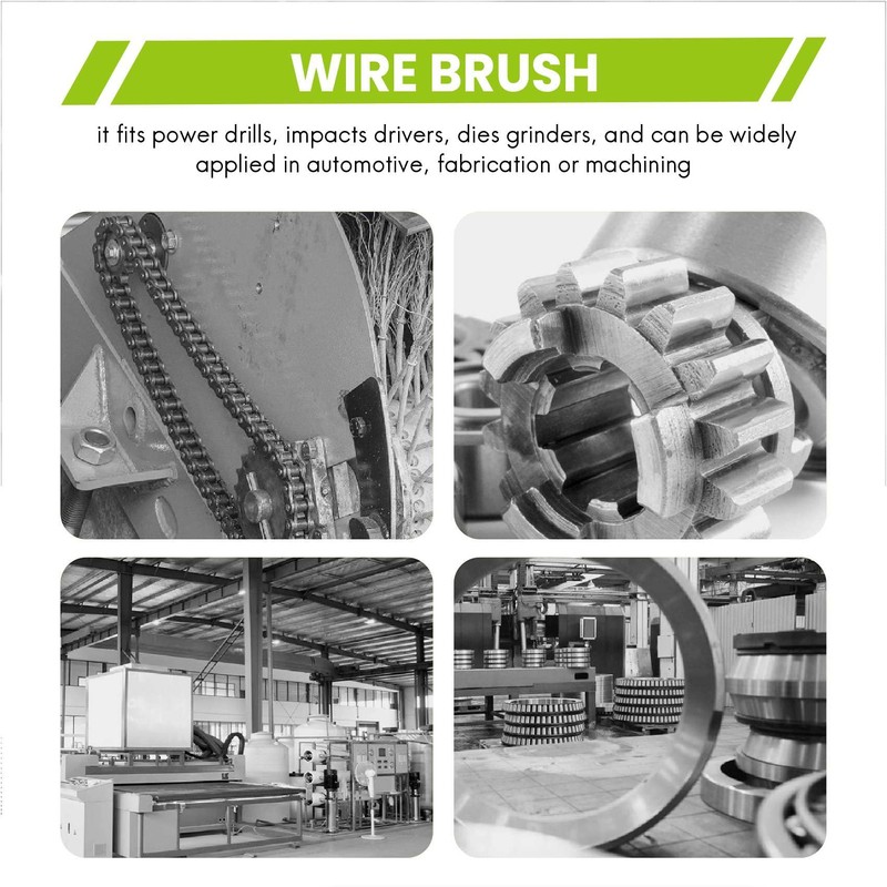 - Wide range of applications: as s a new type of brush product, the power has a wide range of applications, it fits power drills, impacts drivers, dies grinders, and can be widely applied in automotive, fabrication or machining