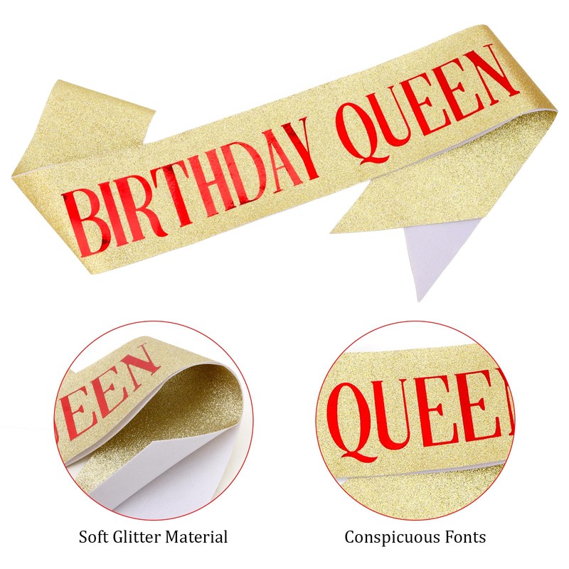- Birthday Queen Sash: The birthday sashes for women consists of two parts: birthday sash for women, birthday pins for women. It is not only practical, but also can be used as a fashion accessory to enhance the taste and style of the overall wear belt as a birthday gift, implying the giver's care and blessing to the recipient