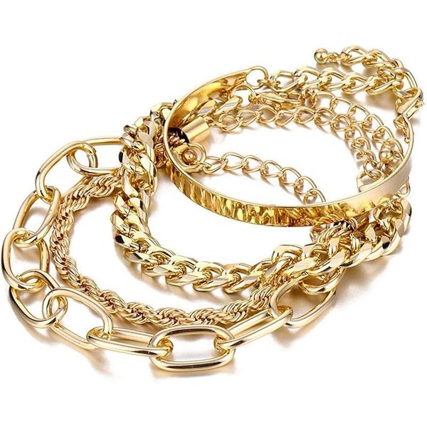 Gold Bracelets for Women, 14K Gold Plated Dainty Layered Chain Bracelets Adjustable Cute Bangle Link Bracelet Set:_4 PCS Gold