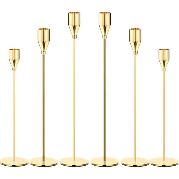 Gold Candle Holders, Set of 6 Gold Candlestick Holders Taper Candle Holders fits 3/4" Thick Pillar Candle Led Modern Metal Candles, Elegant Stands Decorative Table Candle Holder - Color: Gold