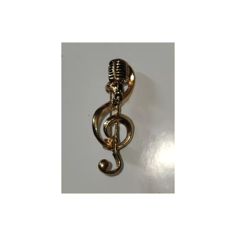 Gold - Classic Retro Skeleton Microphone With Treble Clef - Music - Brooch/Pin