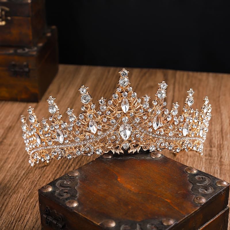 - Well Handmade Tiara: Our gold crown made from shiny artificial crystals and high-quality white rhinestones which are artificially inlaid to the metal materials,fashionable, not easy to fall off, create a delicate crown for you.